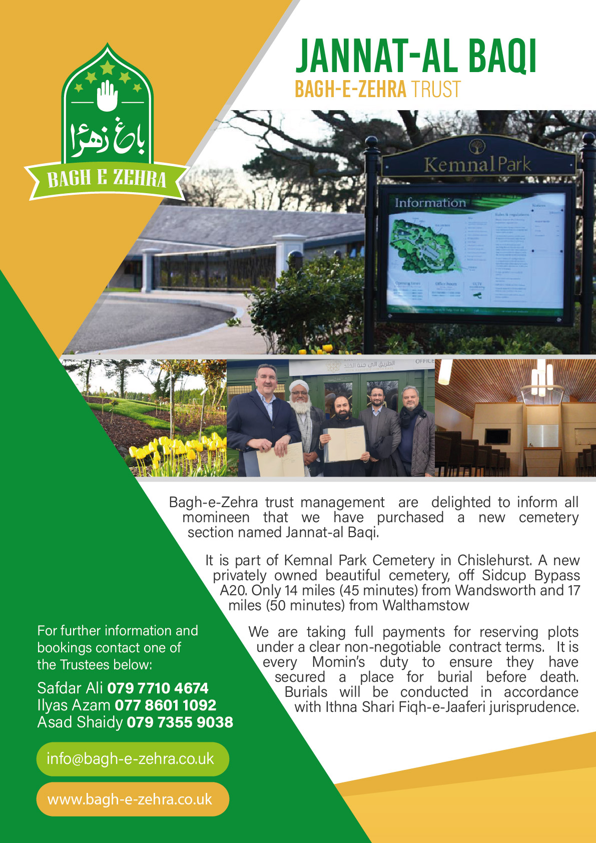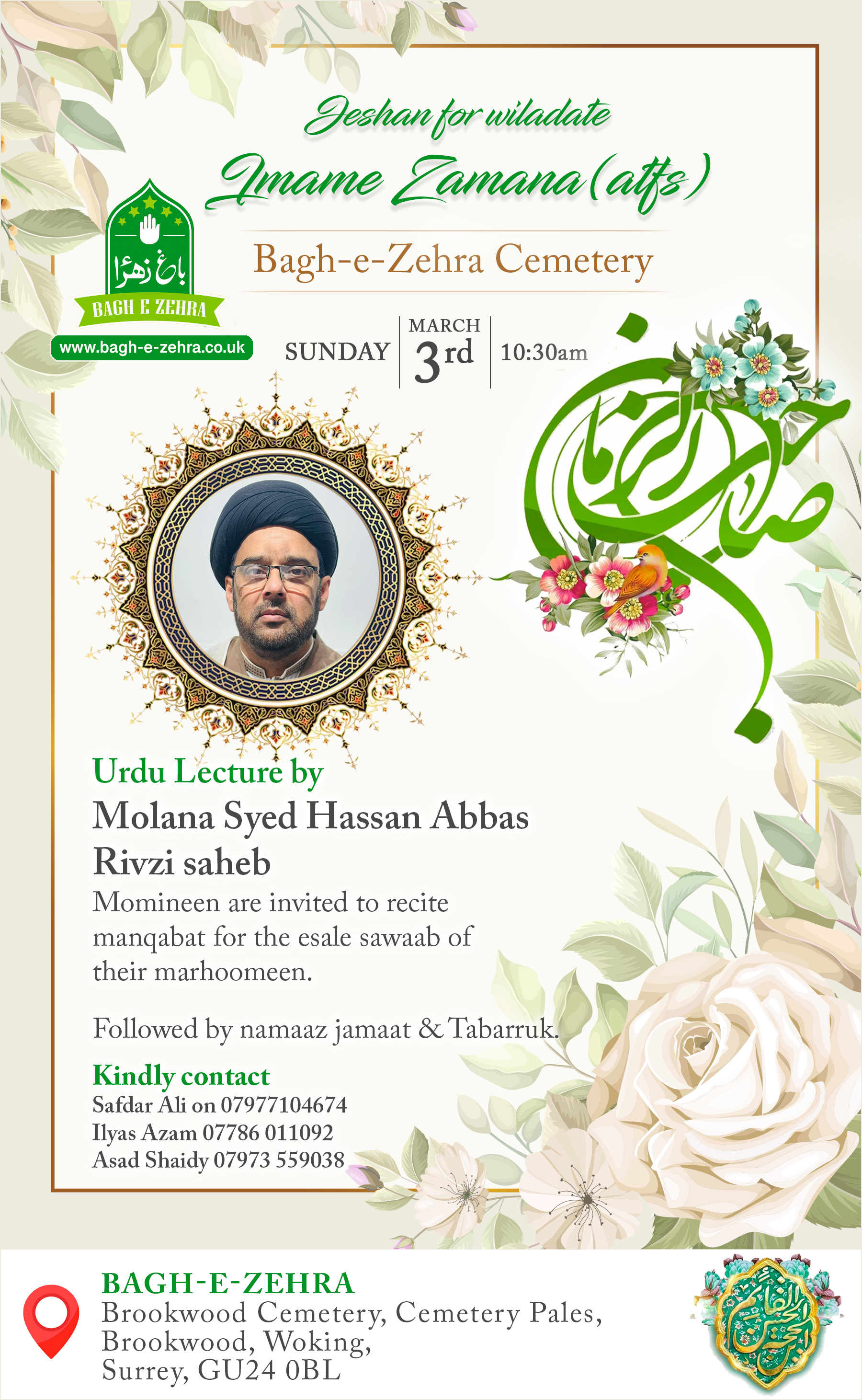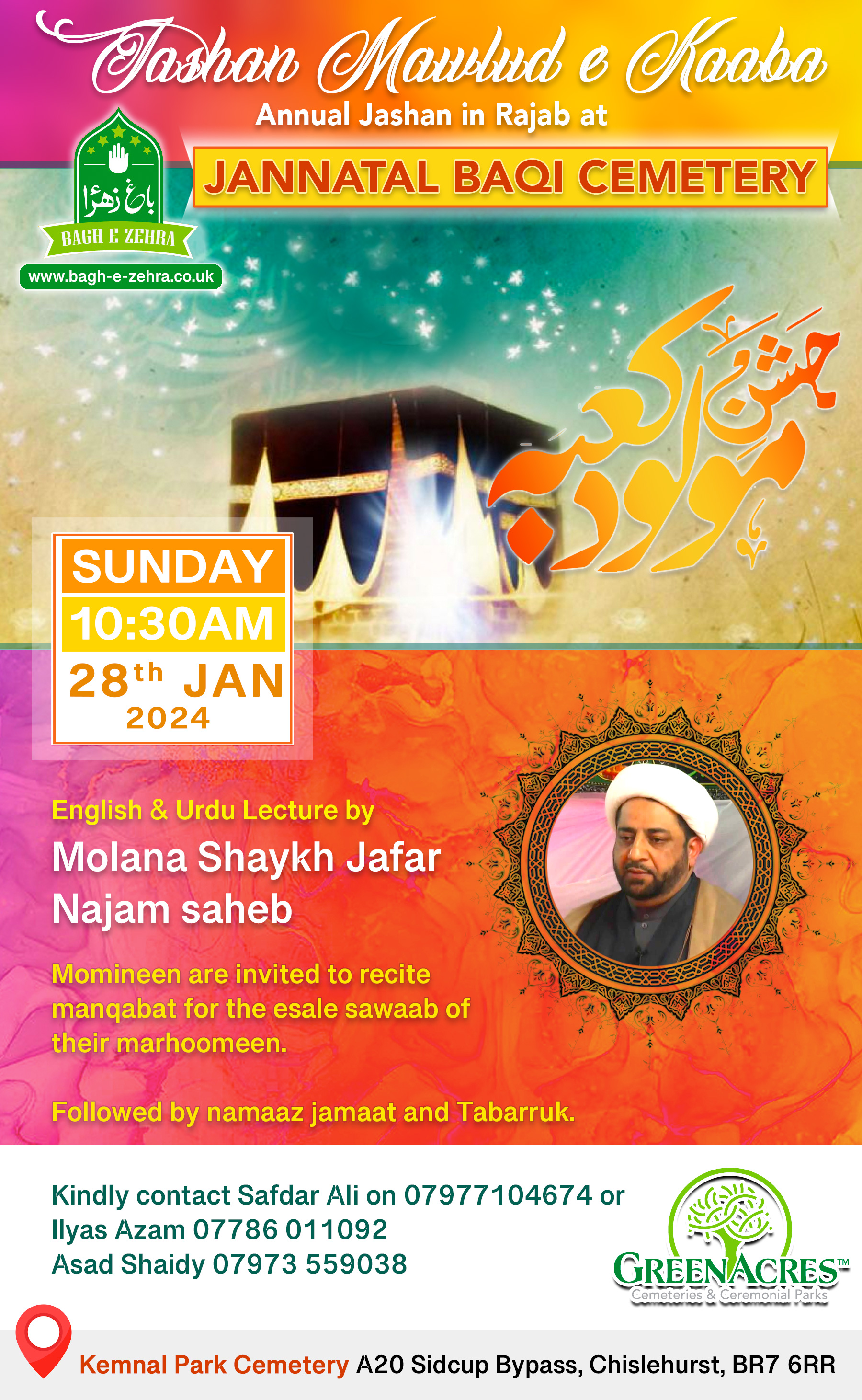 Twice a year we organise large religious gatherings at the cemetery. This includes recitations in Urdu and English. The functions are as follows: